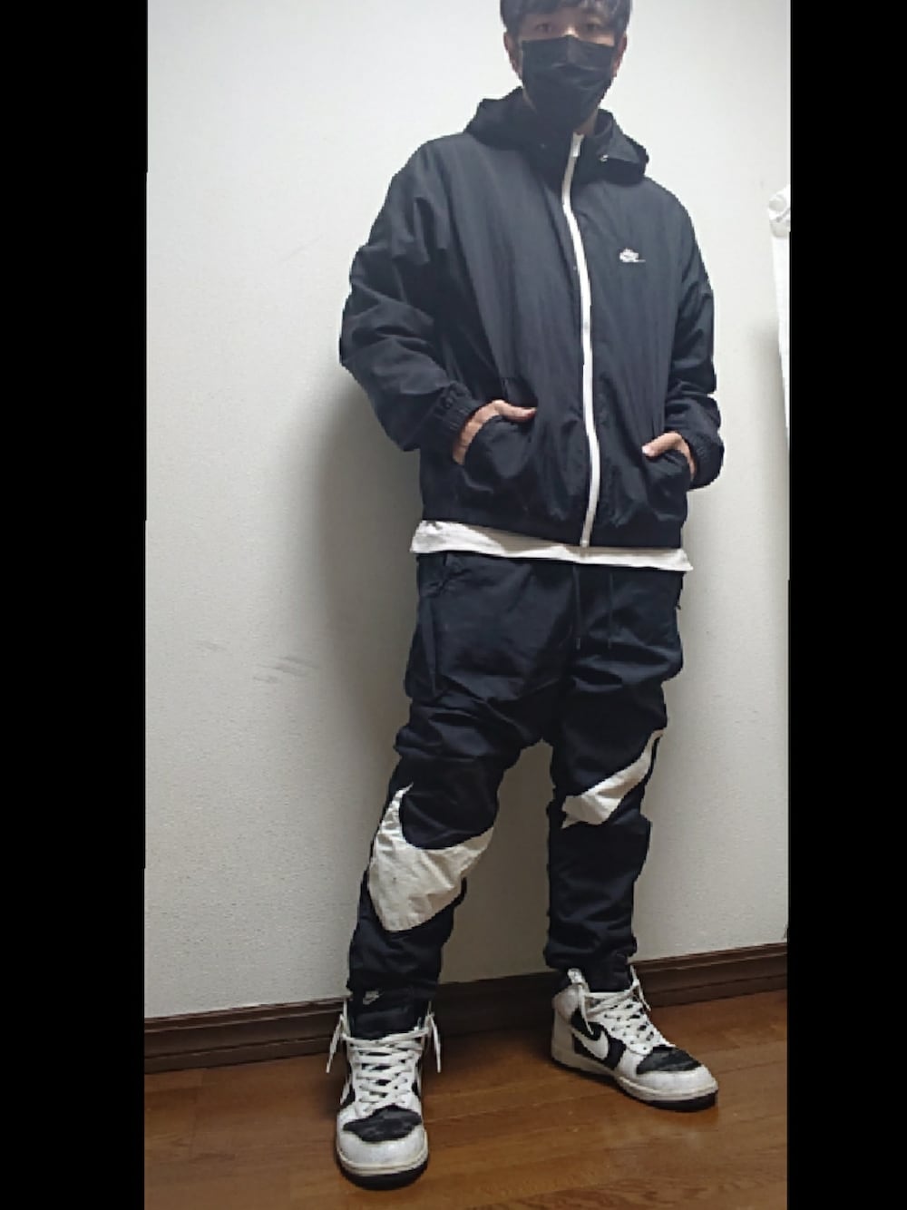 ご覧頂きありがとうございます! いつもいいねやSAVEもありがとうございます! 友人にナイキの黒のナイロンジャケットをいただいたのでコーデしてみました!