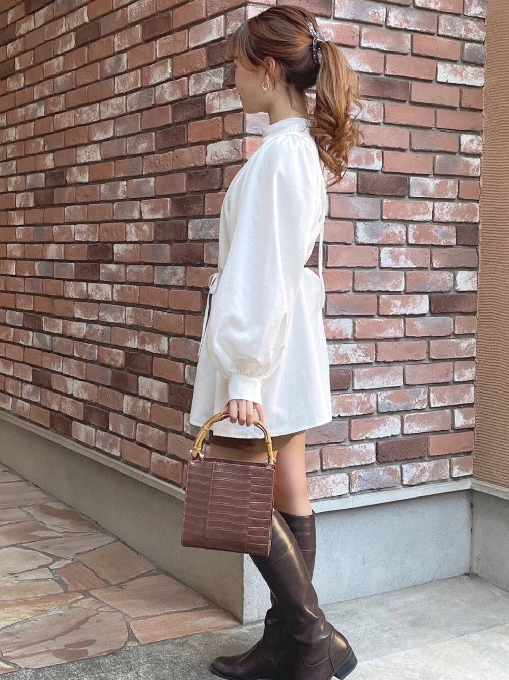 今季1番好きだったチュニック🤎🤍 ボリュームたっぷりな可愛いお袖とVネック&丸襟2wayで着れる万能なとこがお気に入り🧺 ミニ丈のボトムスとロングブーツで合わせるのが気分🧸