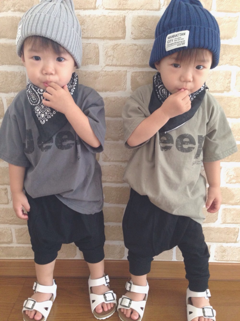 見て下さりありがとうございます(=´∀`)人(´∀`=)♡ 今回はJeep Tシャツに黒のサルエルパンツを合わせてチャラ男コーデ(笑) 今にもダンスしちゃうぞ★的な感じで(笑)ニット帽とキャップバージョンがあります(*^^*)!私的にキャップのが好きかなー!2人お揃いコーデも良いけど、色違いコーデも好き♡♡
