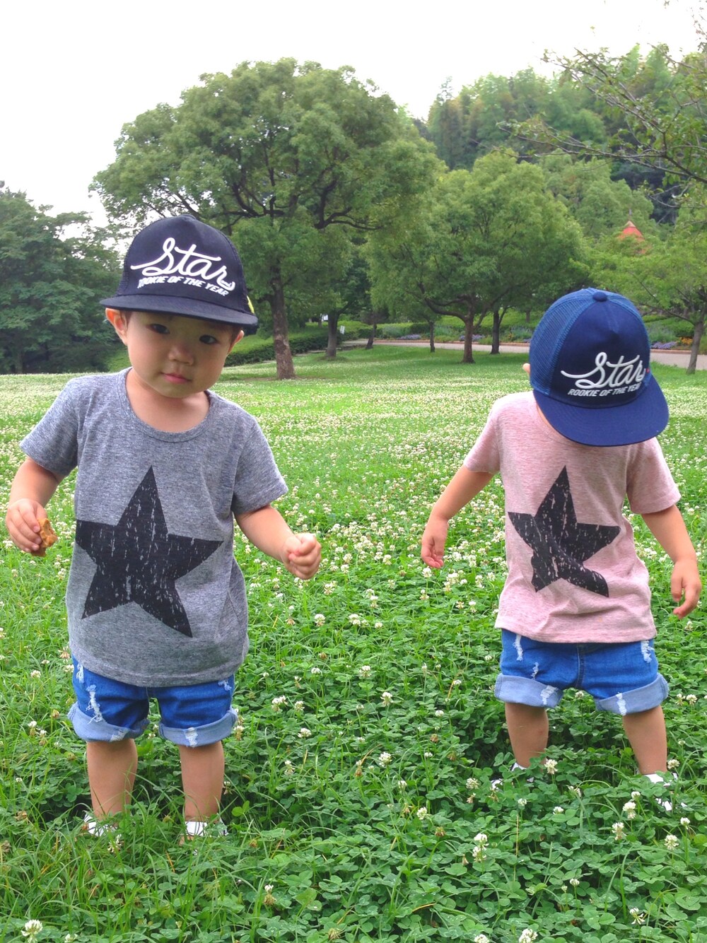 見て下さりありがとうございます🙏❤️ いいね❤️save❤️コメント❤️フォロー 本当に嬉しいです☺️❤️✨ 昨日のお出掛けコーデです🎵 またまたキャップww ダメージデニムハーフパンツを ロールアップしてショート風に✨ 韓国子供服が大半😂 恐縮ながら、いつも仲良くさせて貰ってる Retton君と勝手にリンクコーデさせてもらいました😂❤️ずっとリンク出来るのを狙ってました(笑) Ampersandのキャップと ★Tシャツ❤️ れっと君は素敵にホワイトコーデ✨ れっと君ママごめんね😂🙏 昨日は元職場仲間とママ会ランチ✨ はじめてキッズルームのあるcafeに行きました😳遊んでてくれるから凄くゆっくり出来たし、4.5ヶ月の赤ちゃん達に癒された☺️❤️