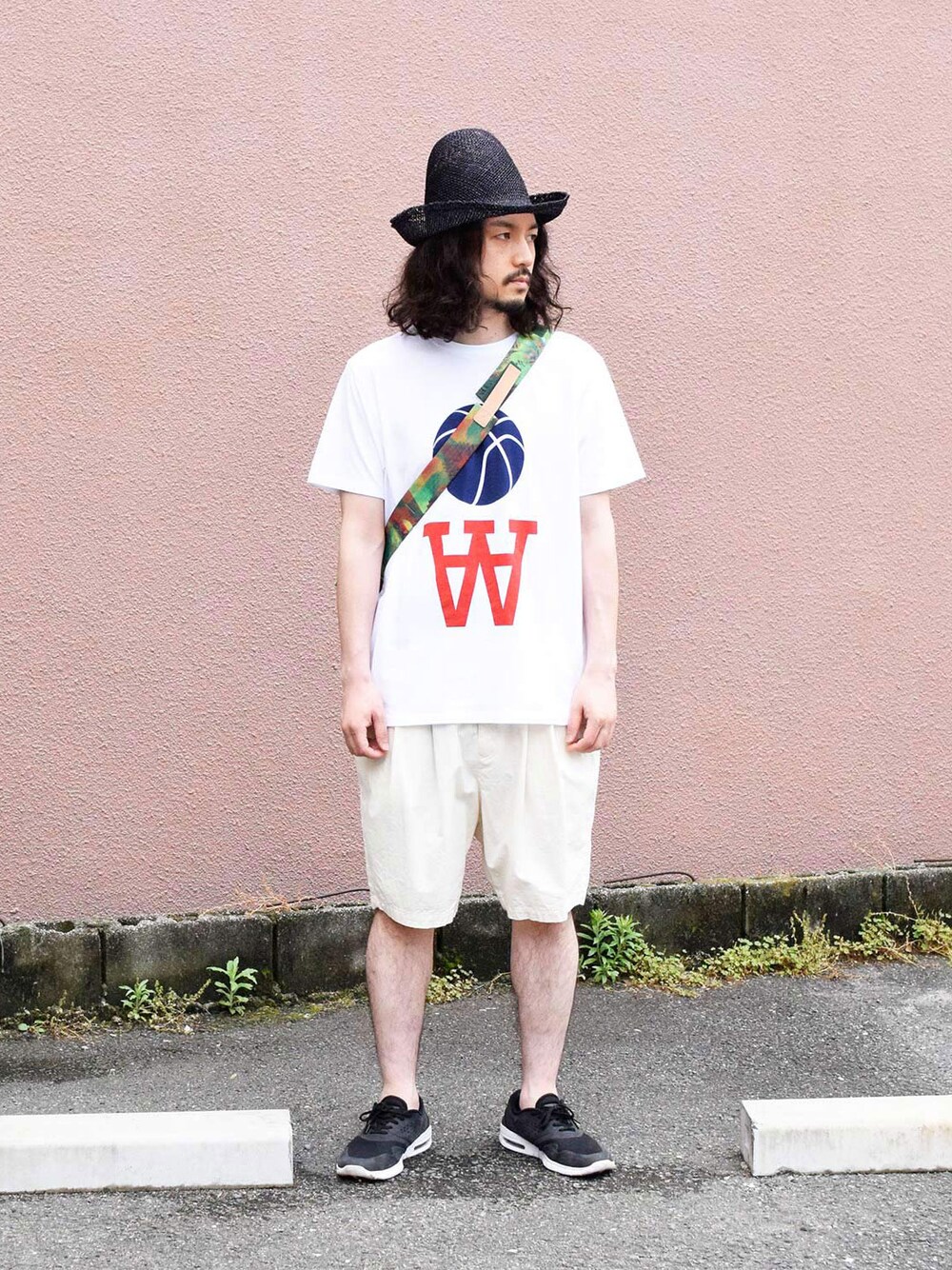 Tops : WOOD WOOD - Team AA T-shirt Pants : my beautiful landlet - toile shorts Hat : Reinhard Plank - MEXICANO HAT BLACK Bag : macromauro - Fe & Co (L)