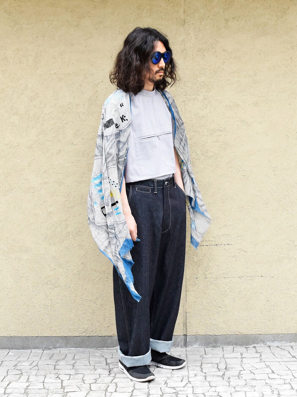 Tops : Christian Lenfant Roi - RUSSELL FENCING Pants : E.TAUTZ - FIELD TROUSERS(DENIM) Eye wear : kuboraum - Maske A3 Stall : mii - HAND PRINTED STOLE(Tambour a broder)