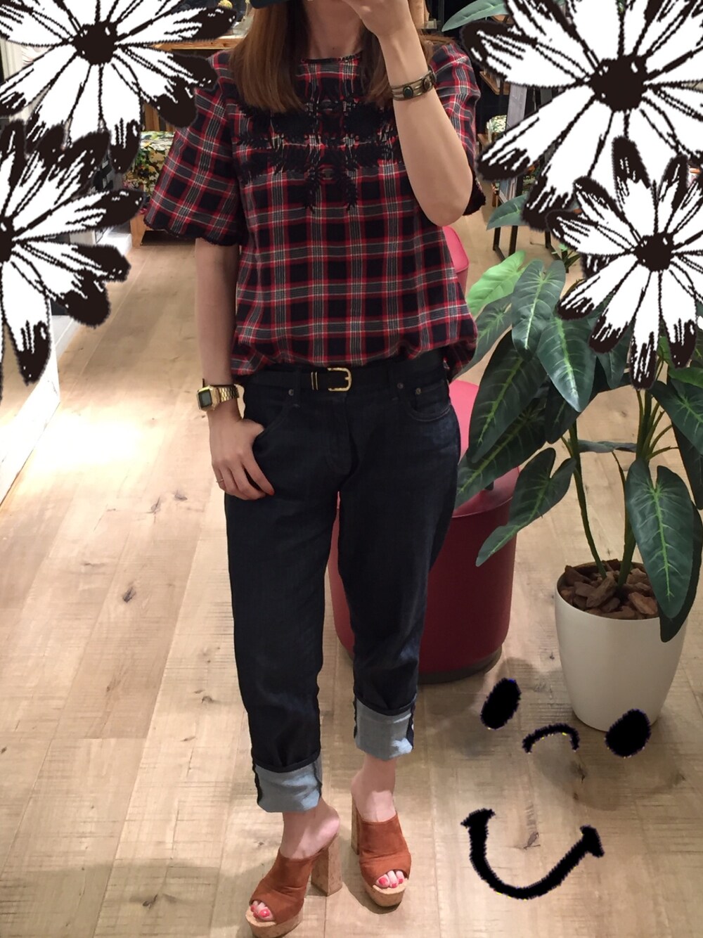 チェック柄に刺繍入りのZARAのTシャツは冬のセールでゲット!やっと着れて嬉しい♪