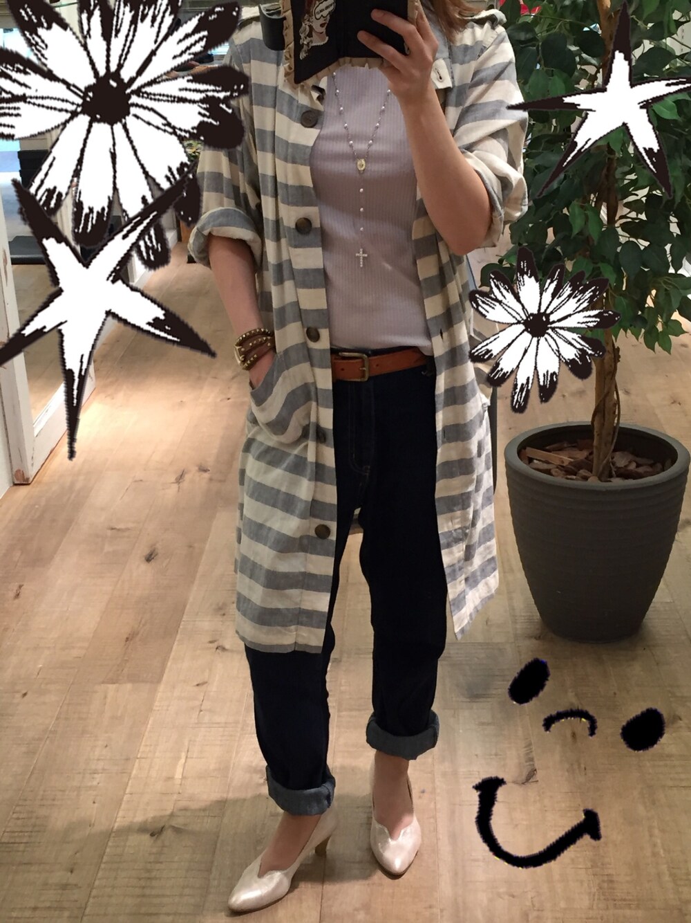 気温も高いので、半袖の上にロングカーデ☆
