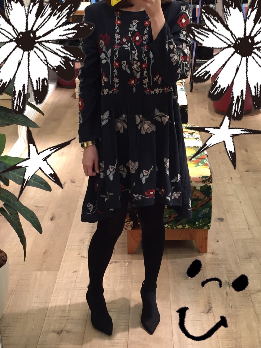 ZARAの刺繍ワンピは、裏にも刺繍があって、どこから見ても可愛い♪