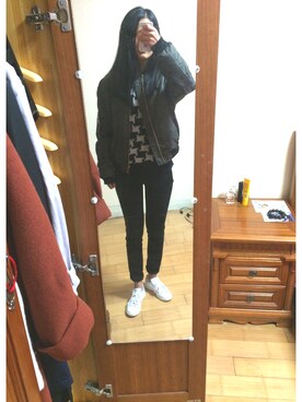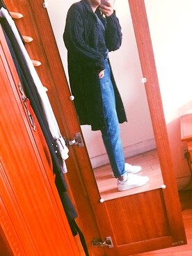 「H&M(エイチ・アンド・エム)のアイテム(デニムパンツ、ブラック系)」を使った、我一定能找到属于我的徐太宇さん(レディース)の冬コーディネート