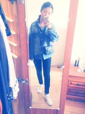 「MIXXO(ミッソ)のアイテム(デニムジャケット、ブルー系)」を使った、我一定能找到属于我的徐太宇さん(レディース)の冬コーディネート