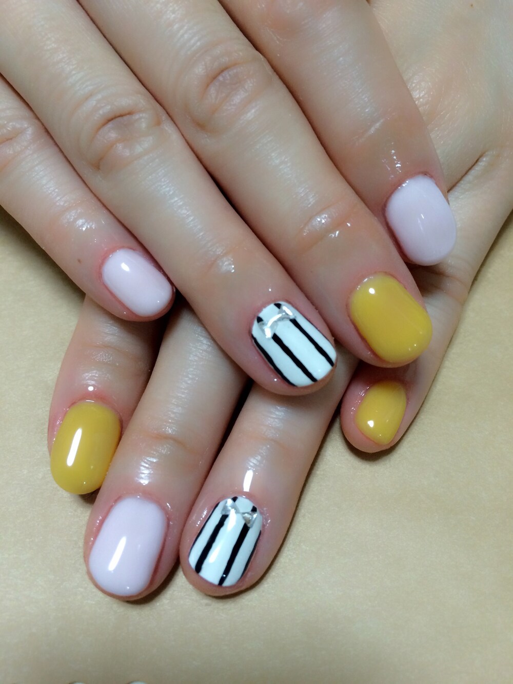 セルフネイル:*) オレンジとピンクはクリアを混ぜて透明感を出しました ほどよいクリアー感が可愛く仕上がりましたー!