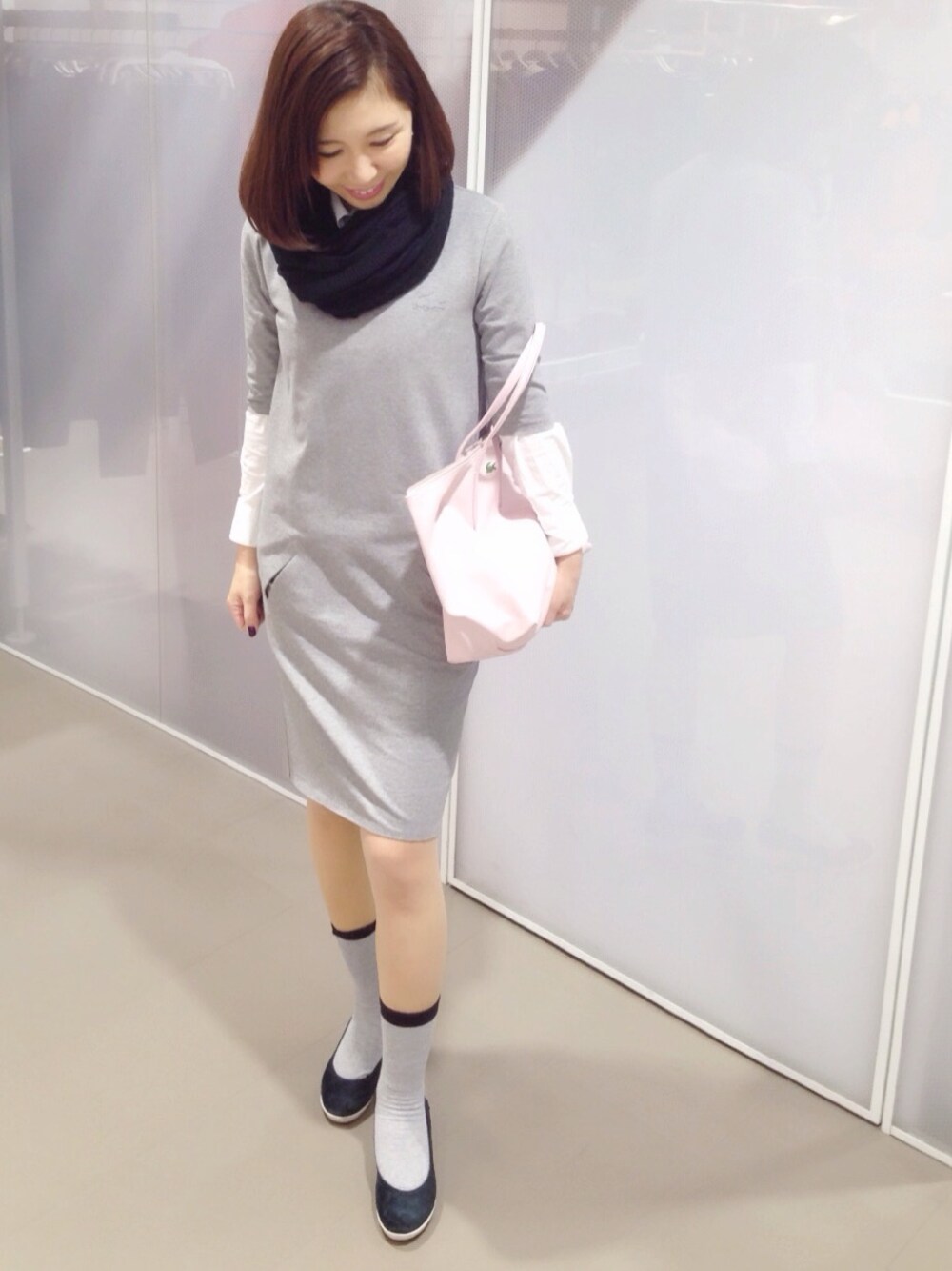 五分袖で胸にワニさんのシールが可愛い、グレーのワンピ。サイズを一つ大きめで買って、シャツとの重ね着をしました。 グレーとパステルピンク、襟と袖のちょっとだけ白…とても淡い配色。 淡いの大好き🐏♡ 差し色はケーブルニットマフラーの黒。 このマフラー柔らかくて、巻き方にバリエがあるから2色持ってるよ(^^)♡ パステルピンクはラコステ渋谷店の店頭にあったよ!この持ち方は友達が真似っこするって笑 ぜんぶ、ラコステ渋谷店の滝沢スタイリストセレクト♡ 今日はまた寒いんだってね。 雪が降るってさ⛄️ ちょい役の収録三本撮りに行ってきます(^^)