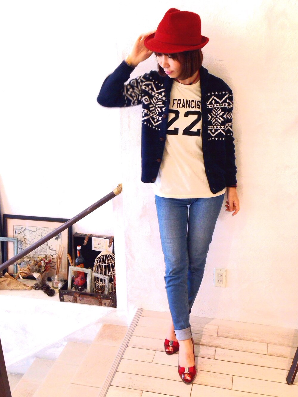 @VITA(ヴィータ)白金店 髪を切りました✂︎ 今日から三日間の出張〜❗️今回は途中下車無しのノンストップ撃ハードなスケジュールw 移動中などに皆さんのところに遊びに行きますね😚(残念だけど、たぶん6〜8日までコメント閉じますね) *** これは昨日のコーデでした(^^) 赤い中折れハットと赤いオープントゥの、ことな(おとな+こども)なコーディネート❤️ カウチンカーディガンは実際に子供服。 ラコステkidsラインの12size😁 子供服の良いところは、ボタンや襟などのディテールにまでデザインがあったり、丈感が絶妙な短さで可愛らしいシルエットが完成するところ。 デニムはストレッチが効いてるお姉さんっぽい細身のラインでオープントゥパンプスまでを統一しました👠 そしてこのパンプス、コンサバ定番のフェラガモちゃん!こんな赤色にレトロなあのおリボン🎀 よく見たらキュートやんかw からの〜ペディキュアの赤色も抜かりなくw でも出張中は生脚はムリ。 西日本のお天気と花粉が気になるな😉ではでは、行ってきまーーすぅ✈️