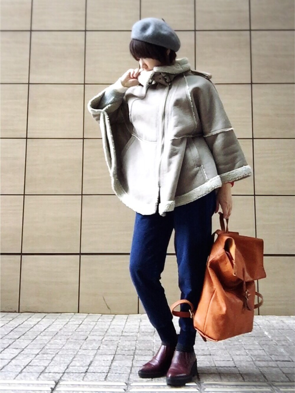 マントみたいなドルマンスリーブのコート。 ムートンはフェイクなんですが、フェイクでホッとすることあるよね😅 毛の心配、匂い、本物だと気を遣う。だから、普段使いはフェイクが好き😁 デニムみたいなスウェットパンツとマニッシュシューズの組み合わせ、履いてみたらアリだと思いました😊✨ コメント欄閉じ中🙇