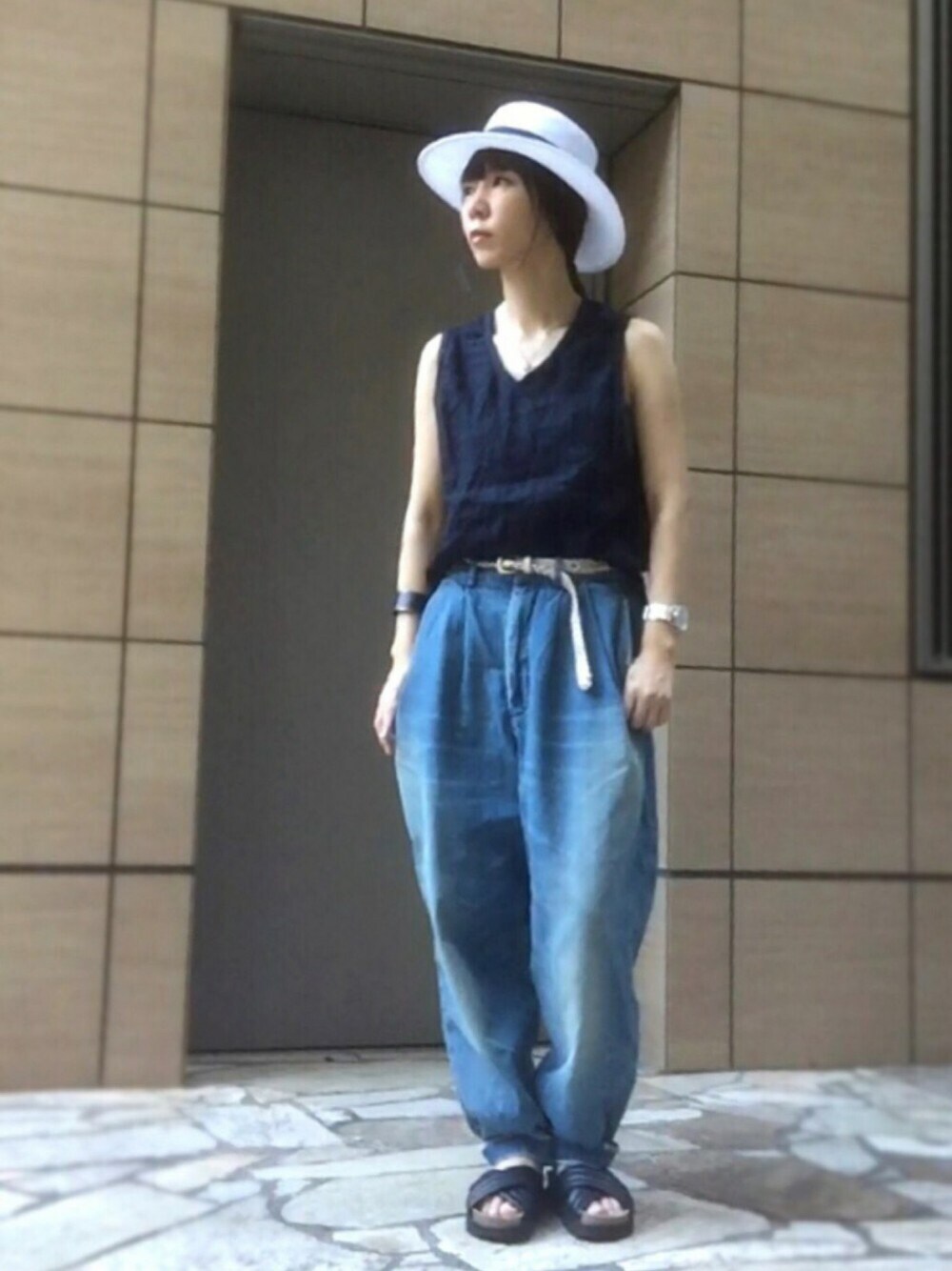 ワニコのタンクトップを使ったコーディネート