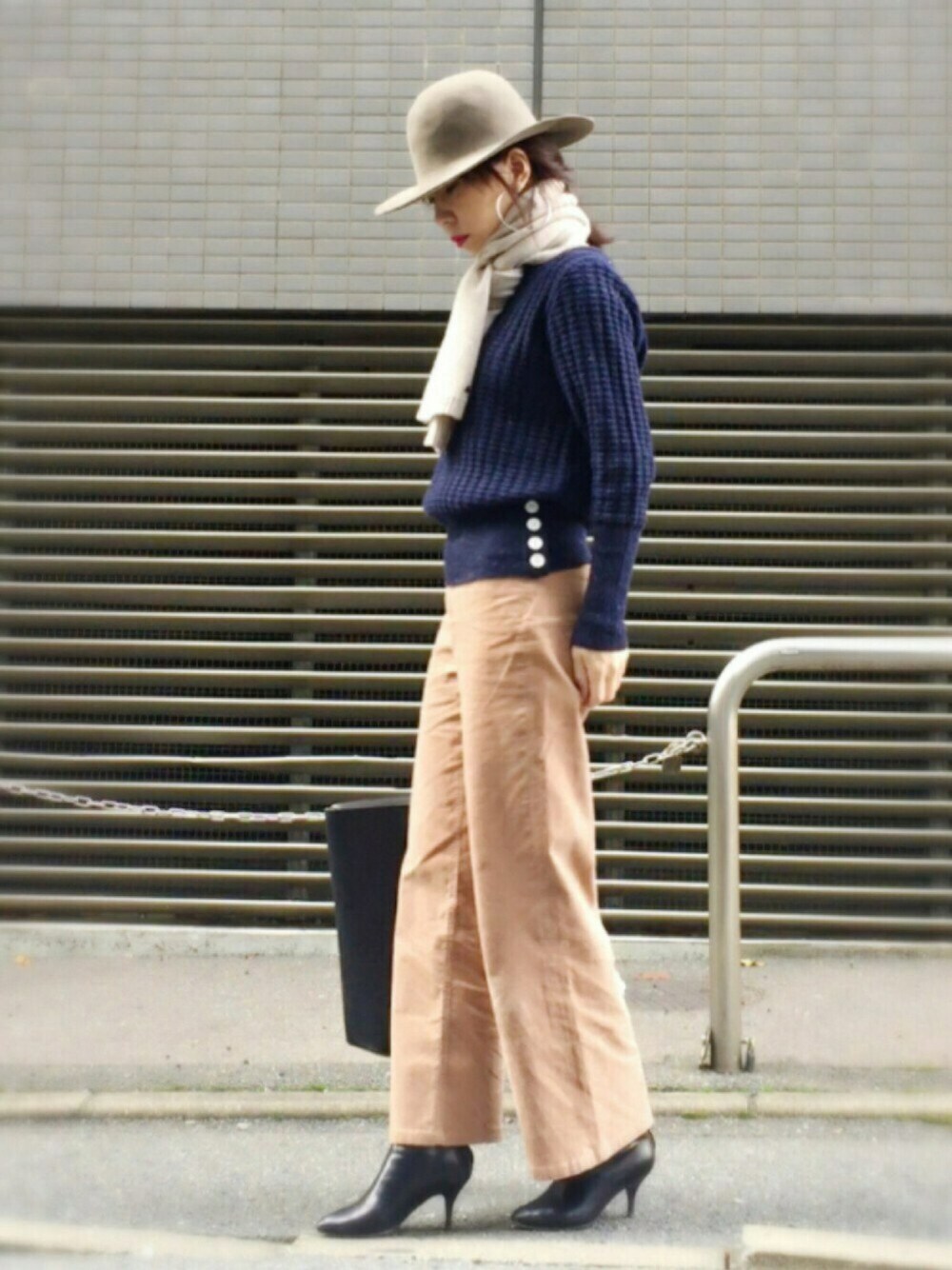 N.(Natural Beauty Basic) コーディロイワイドパンツ ワイドなのに柔らかくてゴワつきもなく、コーディロイの光沢がカジュアルコーデを上品に見せてくれます✨ タックインしないショート丈のネイビーのセーターも脚長効果かなw 特に、最近は大人目線を忘れないよう心掛けてる❣️ コメント返せてなくてゴメンなさい🙇♀️