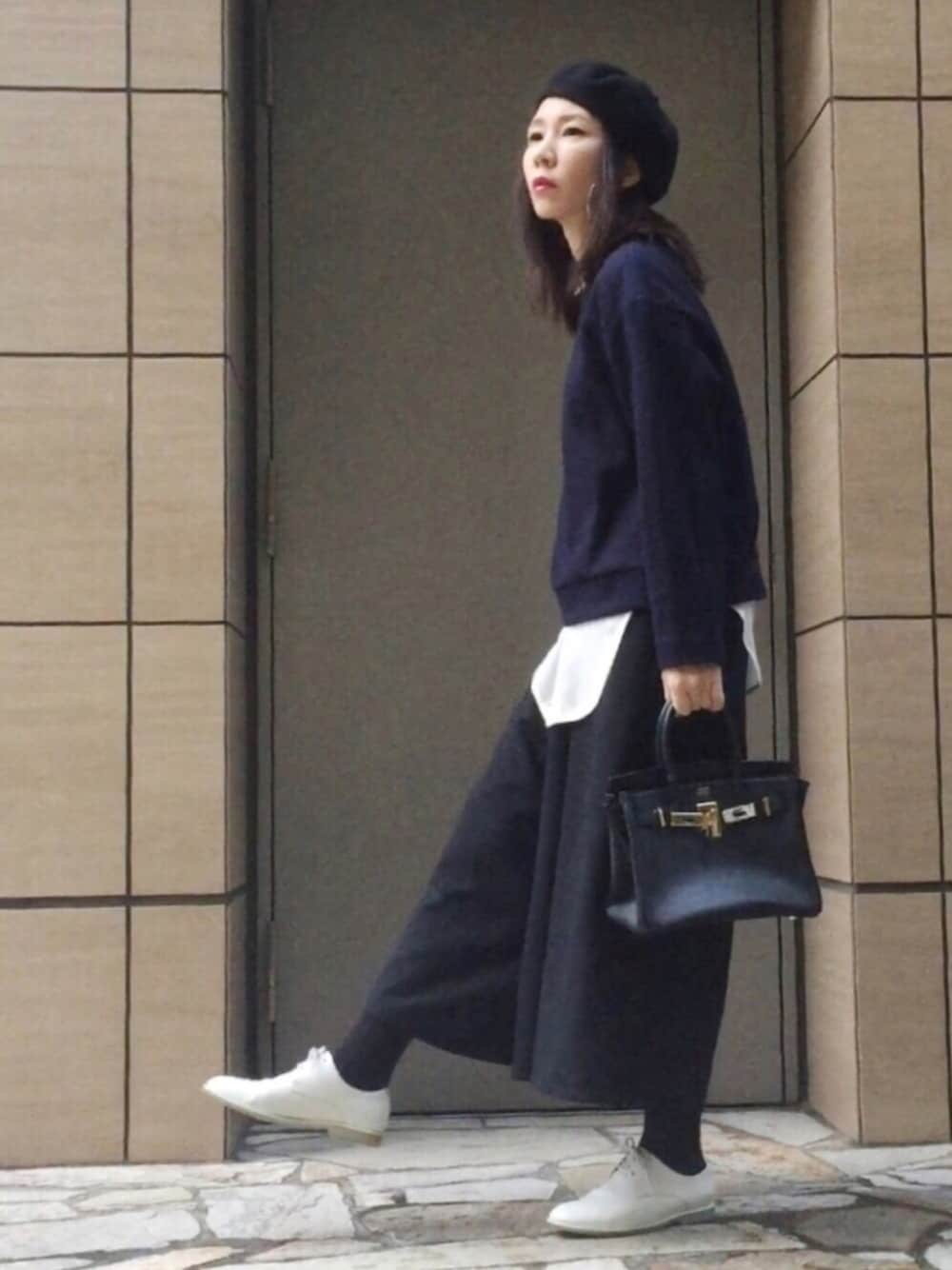 モードっぽい割に気の抜けた顔でスマンスミスw ネイビーのトップスとブラックのガウチョ、 白シャツを入れたけど襟が写りませんでした🙇♀️ バーキンは25㎝の小さい子です。ゴールド金具で冠婚葬祭に使えないクソ真面目(失敬)なバーキンですが、今日今までで一番いい役を演じてくれた気がします😂 また東京を離れました!新幹線から見える富士山が見事でした🗻 いつも見に来てくれてありがとうございます😊