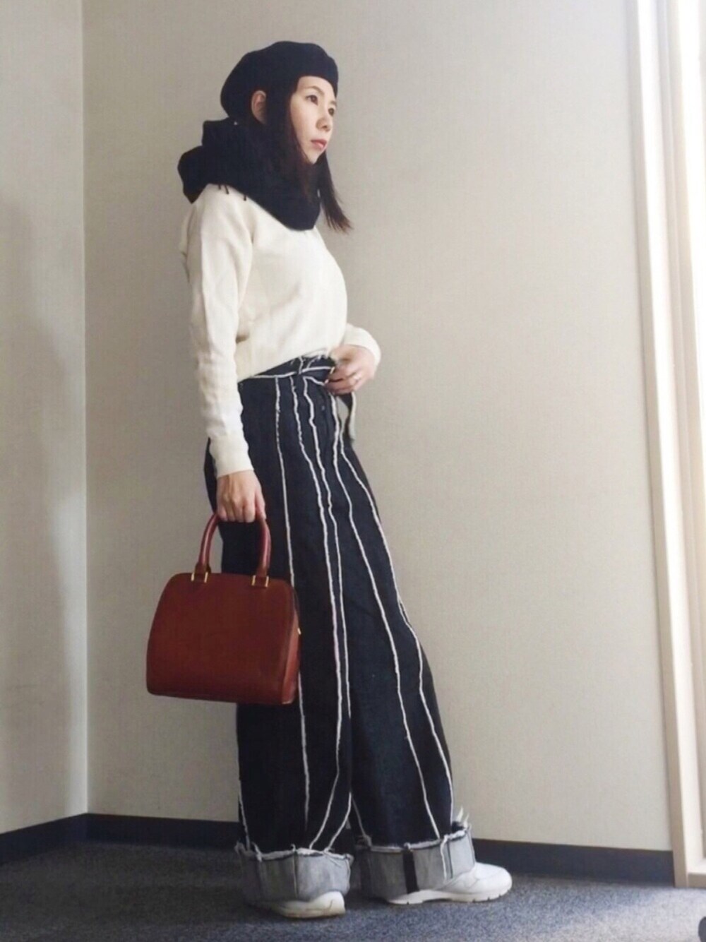 モノトーンでシンプルコーデ🐼 Made in HEAVENのストライプデニムが効いてますね。 Lacosteのホワイトのチルデンニットを軽く着て、マフラーをボリューミーに巻きました✌️ 私って単純。昨日、バーキンがウケたんで、今日はルイ・ヴィトン😂最近のじゃなく残念!ここ数年のヴィトンはかなり好きですが、お値段もかなり⤴︎💸 気負わないアイテムが一番どすw 年末の更新、残り一回やっちゃいます。 何を着るか朝の気分で。 年始は1日か、もしくは2日か、テキトーに更新をお休みしまーす☺️ いつも見に来てくれてありがとう❣️