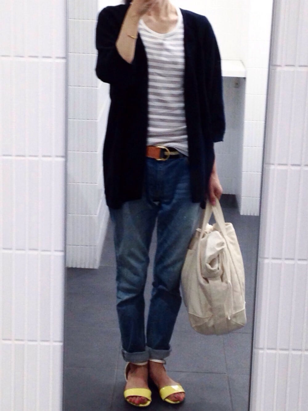 m-aのカーディガン/ボレロ「12GフレンチリネンVネックカーディガン 706492」を使ったコーディネート