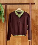 わにこ。のニット/セーター「配色 レイヤードポロニット/襟付きニット/ポロ襟/ハイゲージニット」を使ったコーディネート