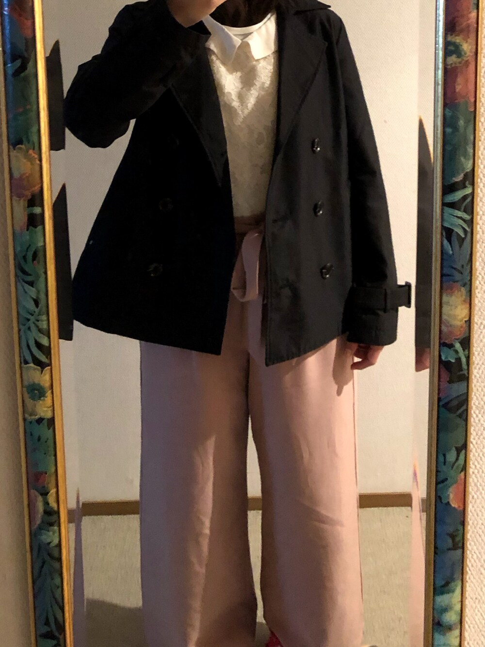 #2019/04/02 #ワイドパンツ #衿付きレースプルオーバー #トレンチコート