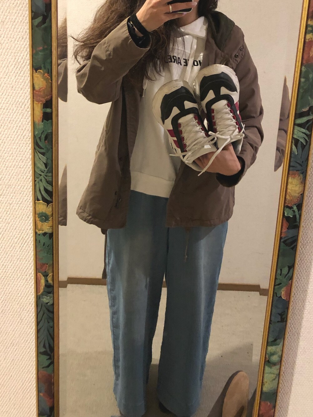 #2019/05/01 #令和 #ハイウエストワイドパンツ #長袖Tシャツ #半袖ロゴパーカー #ダッドシューズ