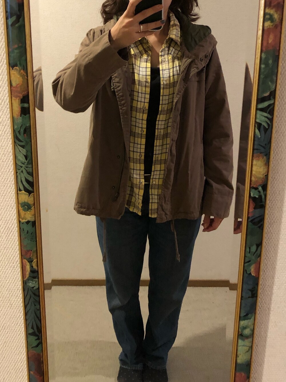#2019/10/11 #デニムストレートパンツ #タンクトップ #チェックシャツ #ミリタリージャケット