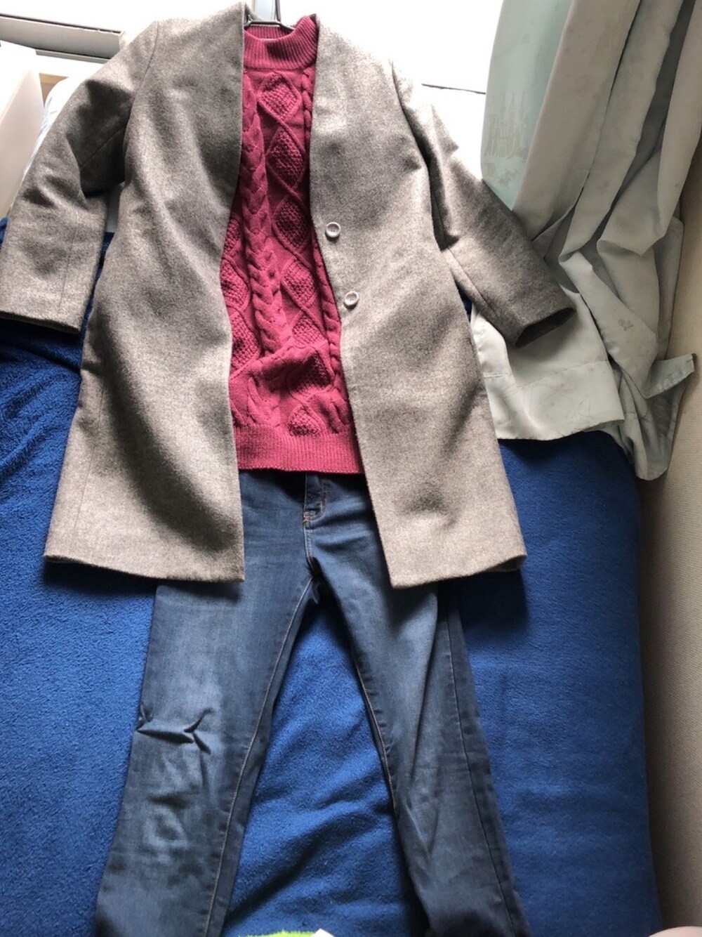 #2019/12/22 #暖スキニーパンツ #ケーブル編チュニック #ノーカラージャケット ノーカラージャケット着回しvol.2★