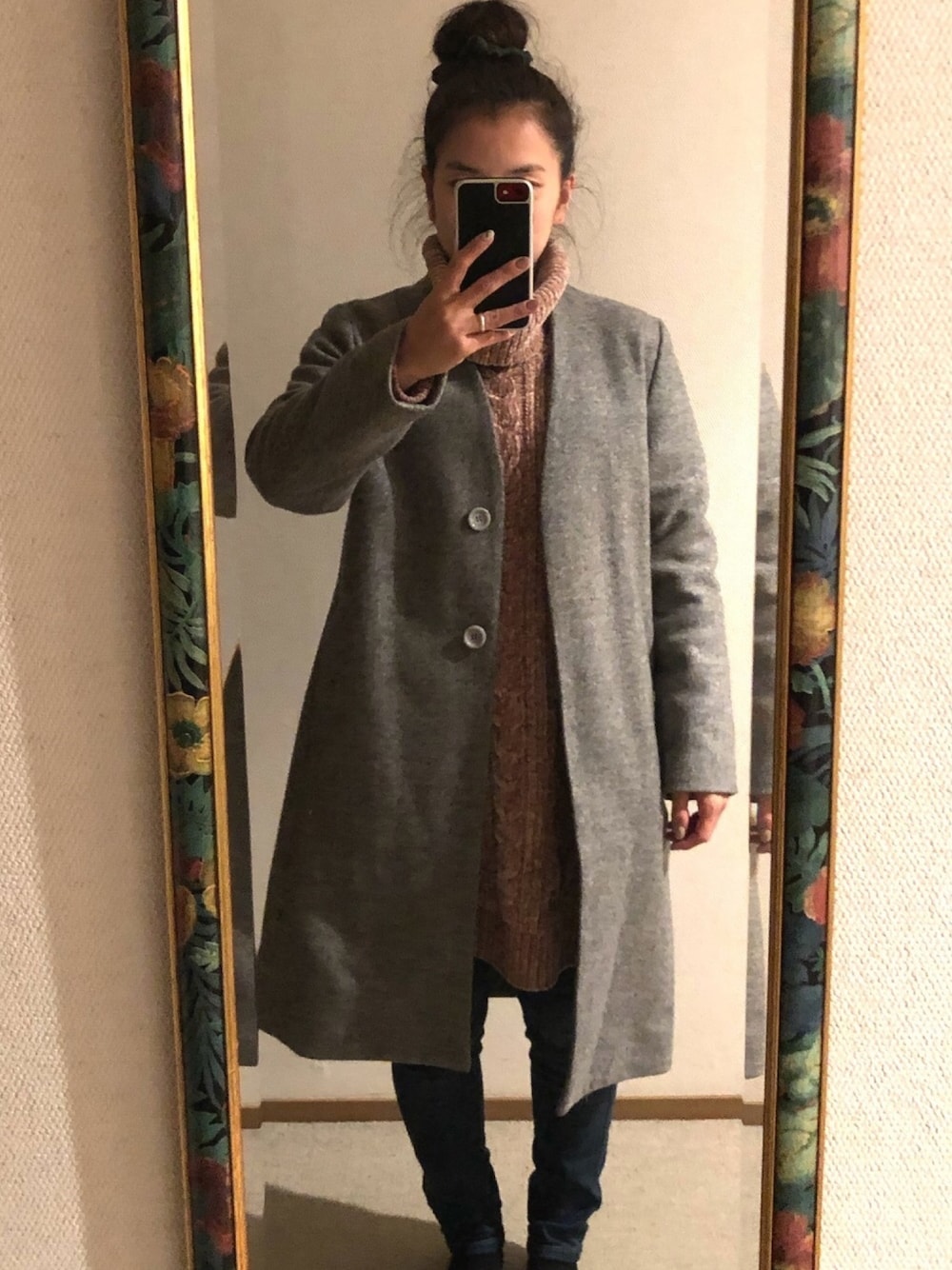 #2020/01/03 #暖スキニーパンツ #オフタートルニットワンピース #ノーカラージャケット ノーカラージャケット着回しvol.3