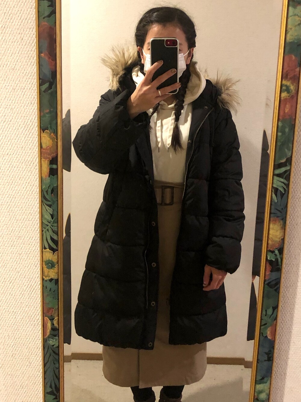 #2020/02/07 #トレンチ風スカート #裏毛パーカー #リバーシブルミリタリージャケット
