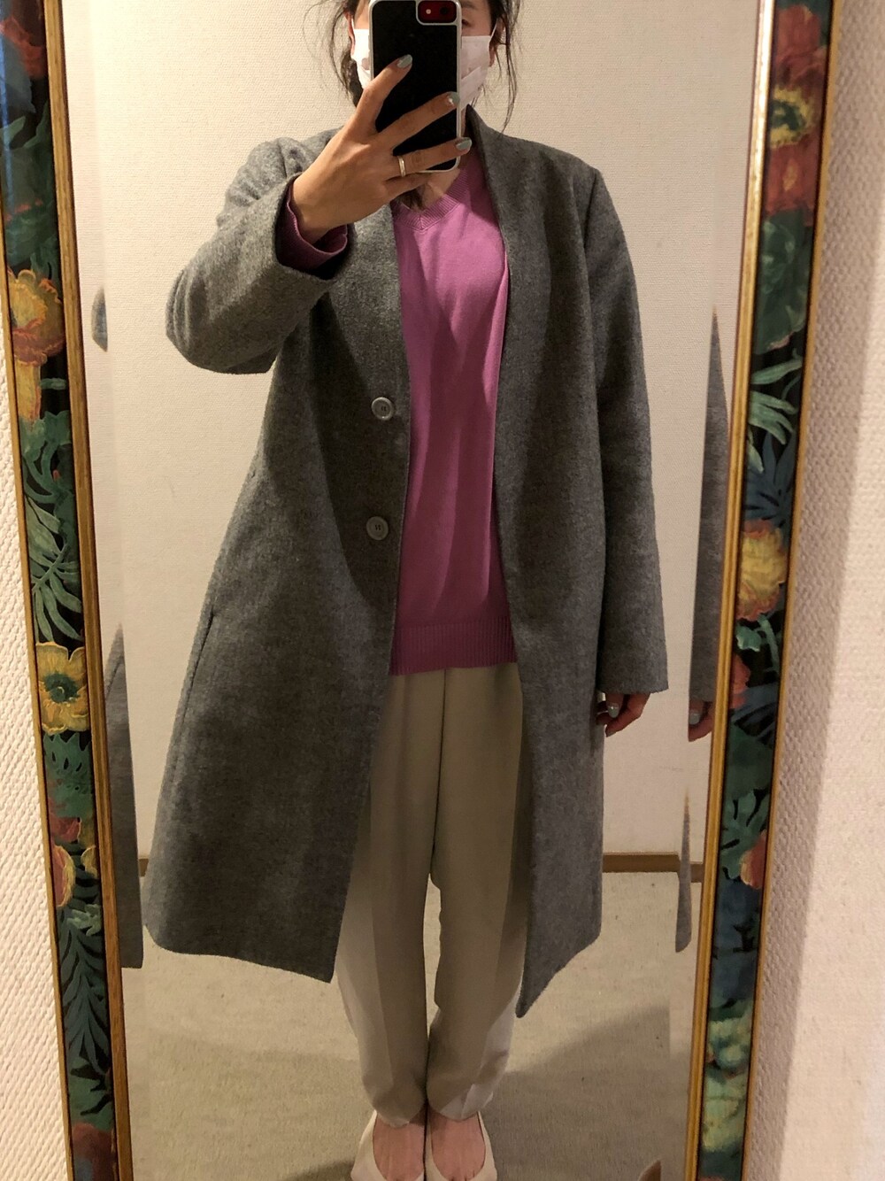 #2020/03/05 #ノーカラージャケット #Vネックプルオーバー #テーパードパンツ