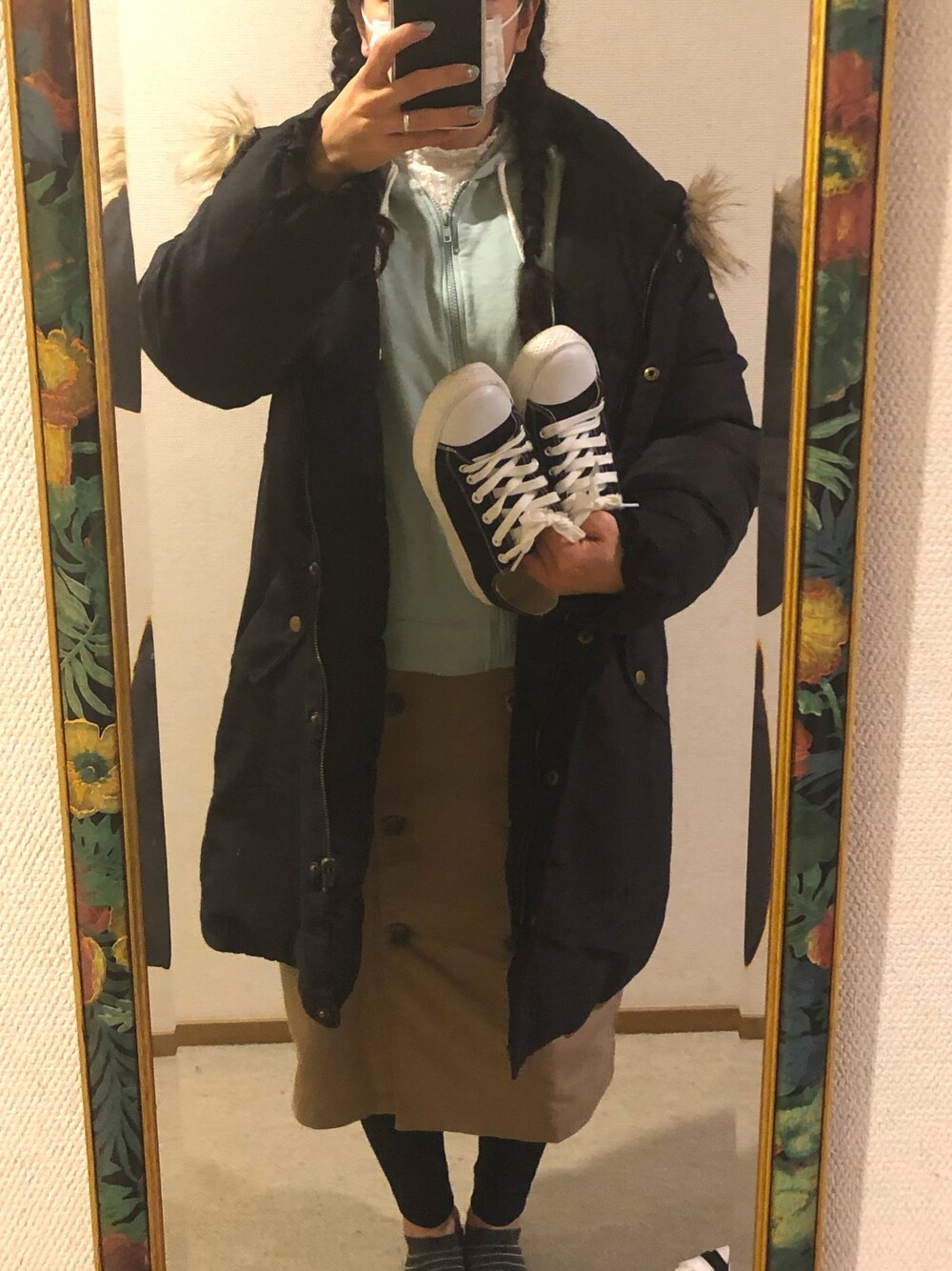 #2020/03/14 #トレンチ風スカート #ジップパーカー #ハイネックレースプルオーバー #リバーシブルミリタリージャケット