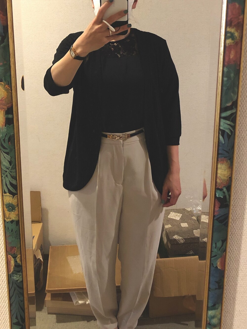#2020/05/29 #テーパードパンツ #レースプルオーバー #ラウンドカーディガン
