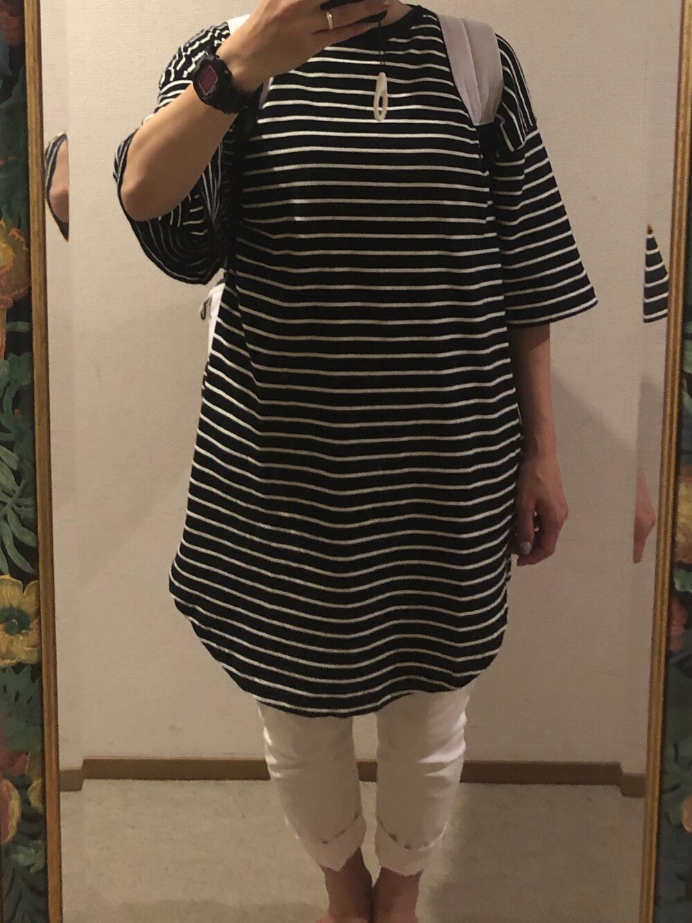 #2020/07/31 #ボーダーTシャツワンピース #スリムカラースキニーパンツ