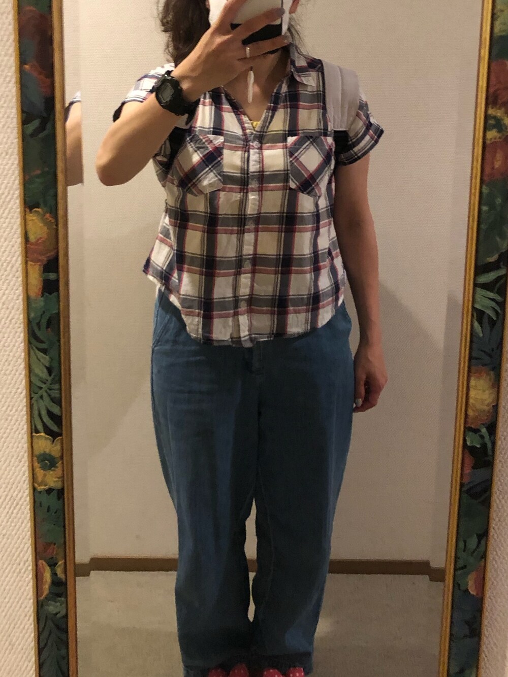 #2020/08/04 #チェックシャツ #デニムワイドアンクル丈