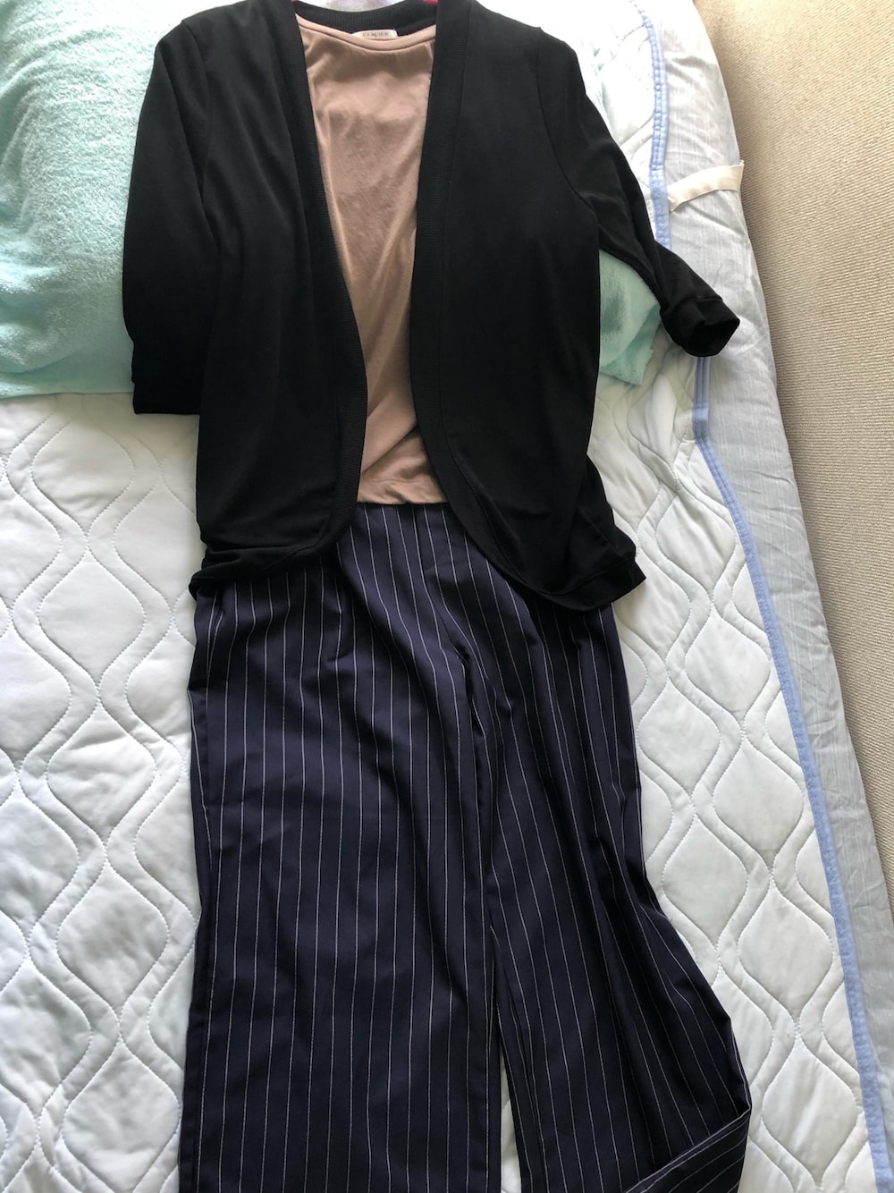 #2020/08/29 #ラウンドカーディガン #ノースリーブプルオーバー #イージーストレートパンツ