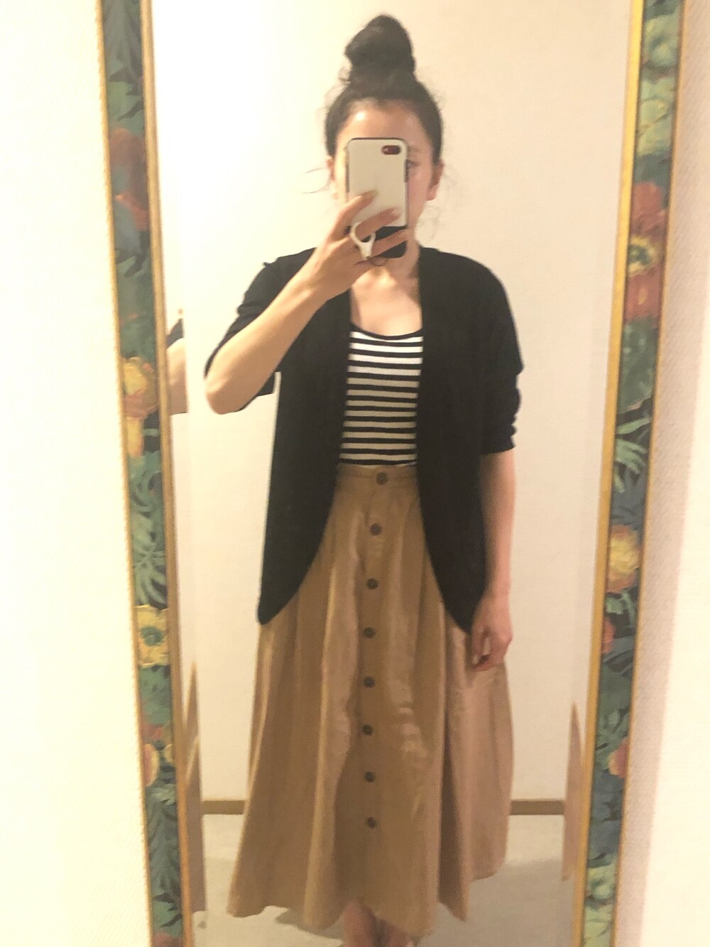 #2020/09/11 #ラウンドカーディガン #ボーダータンクトップ #前釦スカート