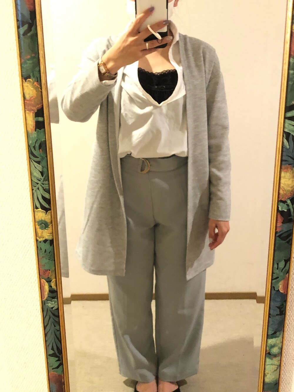#2020/09/25 #スキッパーシャツ #レースキャミソール #共ベルト付ストレートパンツ
