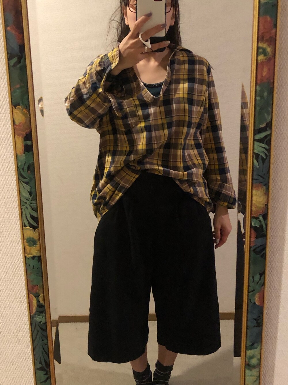 #2020/10/03 #チェックコーデ4日目 #チェックスキッパーシャツ #ビジュー付タンクトップ #ガウチョパンツ