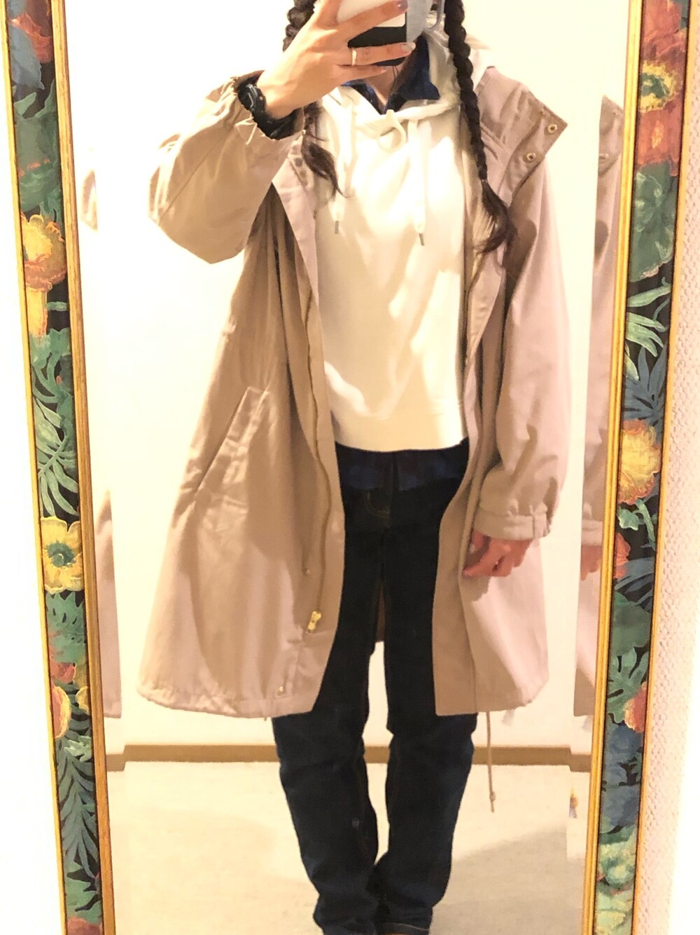 #2020/10/10 #チェックコーデ9日目 #ロングフードコート #パーカー #チェックシャツ #デニムテーパードパンツ