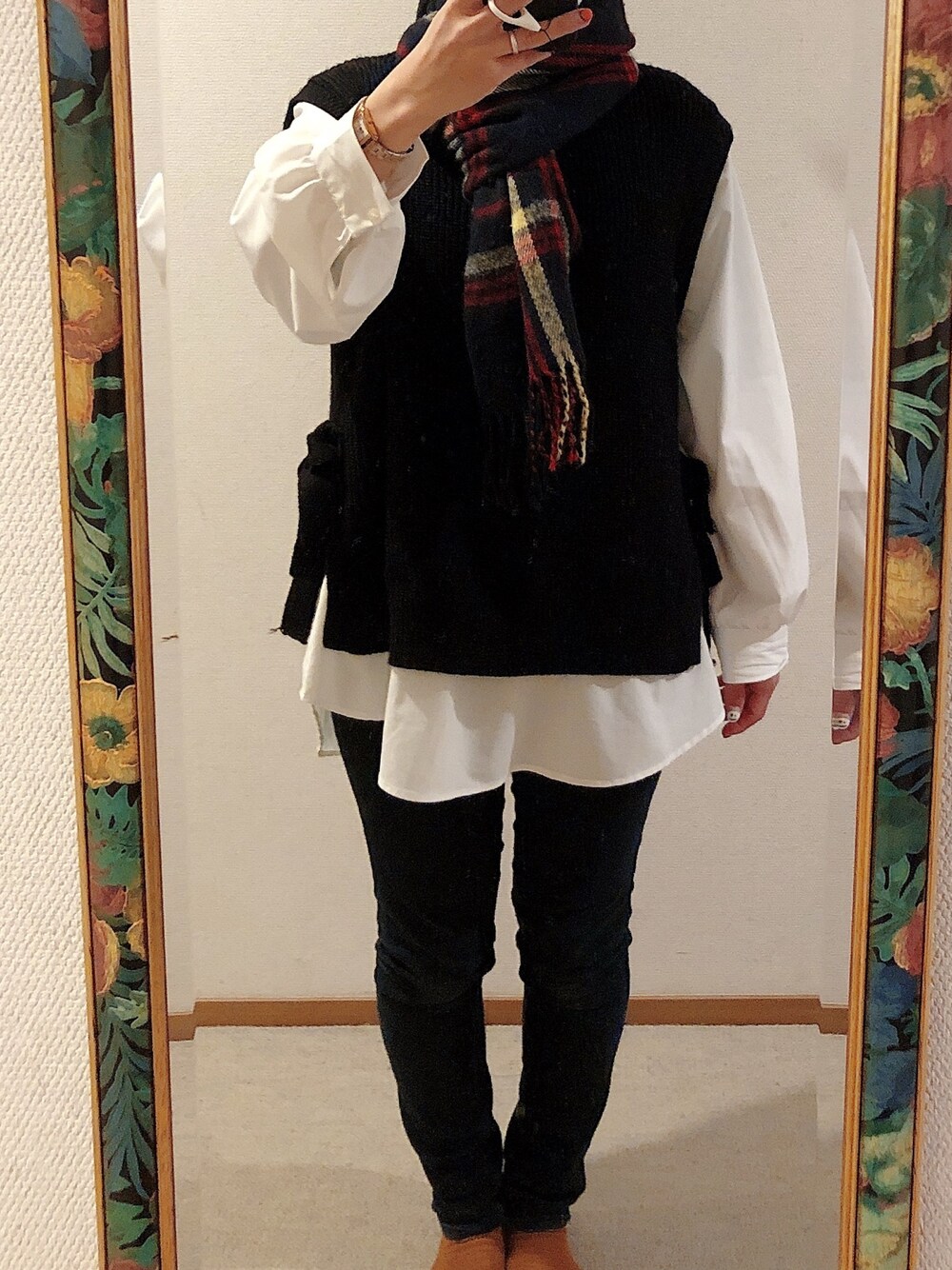 #2020/10/23 #チェックコーデ23日目 #見せかけニットベストプルオーバー #デニムスキニーパンツ