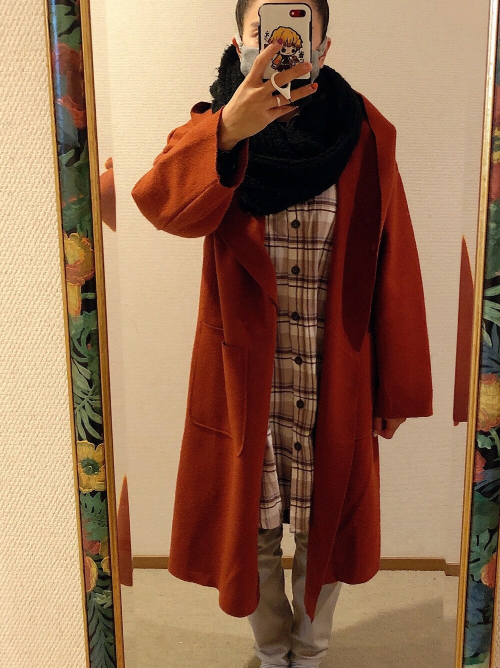 #2020/11/01 #コーディガン #チェックシャツワンピース #カラースキニーパンツ