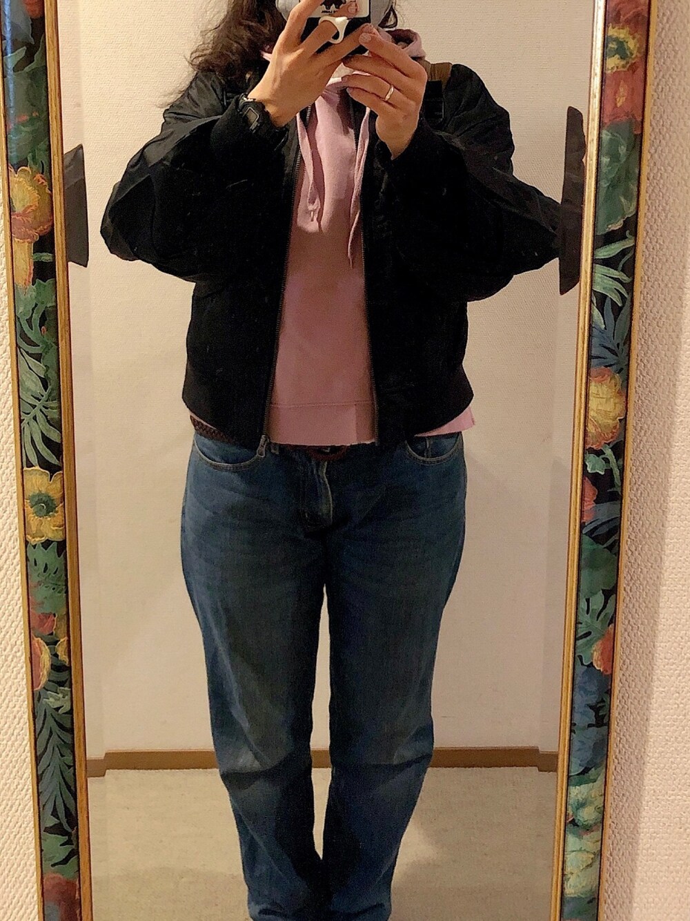 #2020/11/12 #ブルゾン #パーカー #ハイネックレースプルオーバー #デニムストレートパンツ