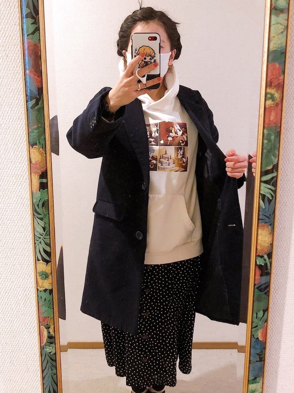#2021/02/07 #Vネックワンピース #プリントパーカー #チェスターコート