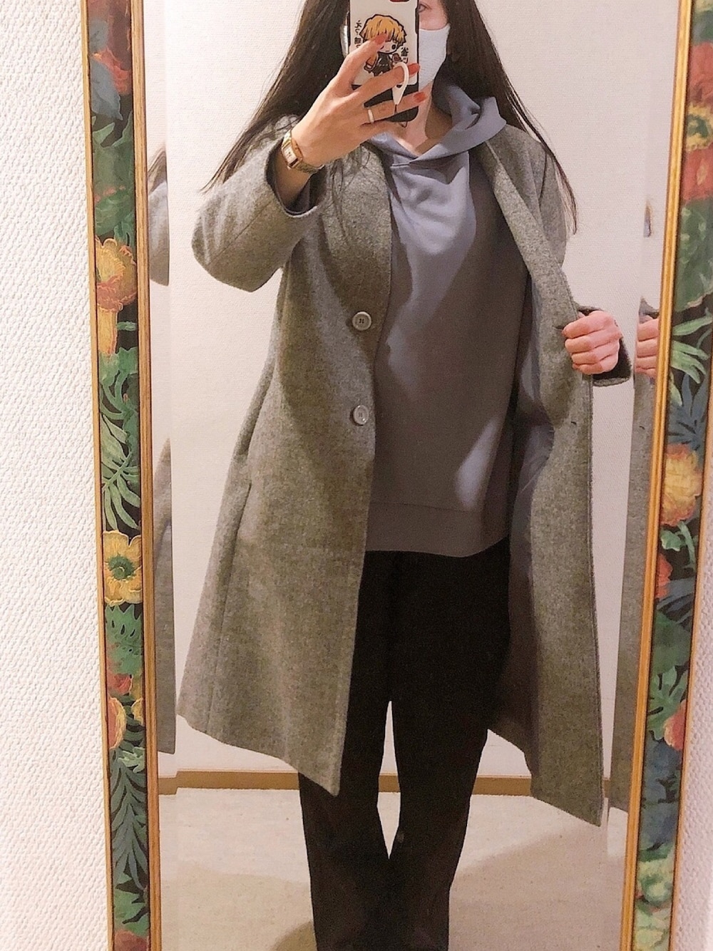 #2021/02/10 #カラーレスコート #きれいめパーカー #ベルト付セミフレアパンツ