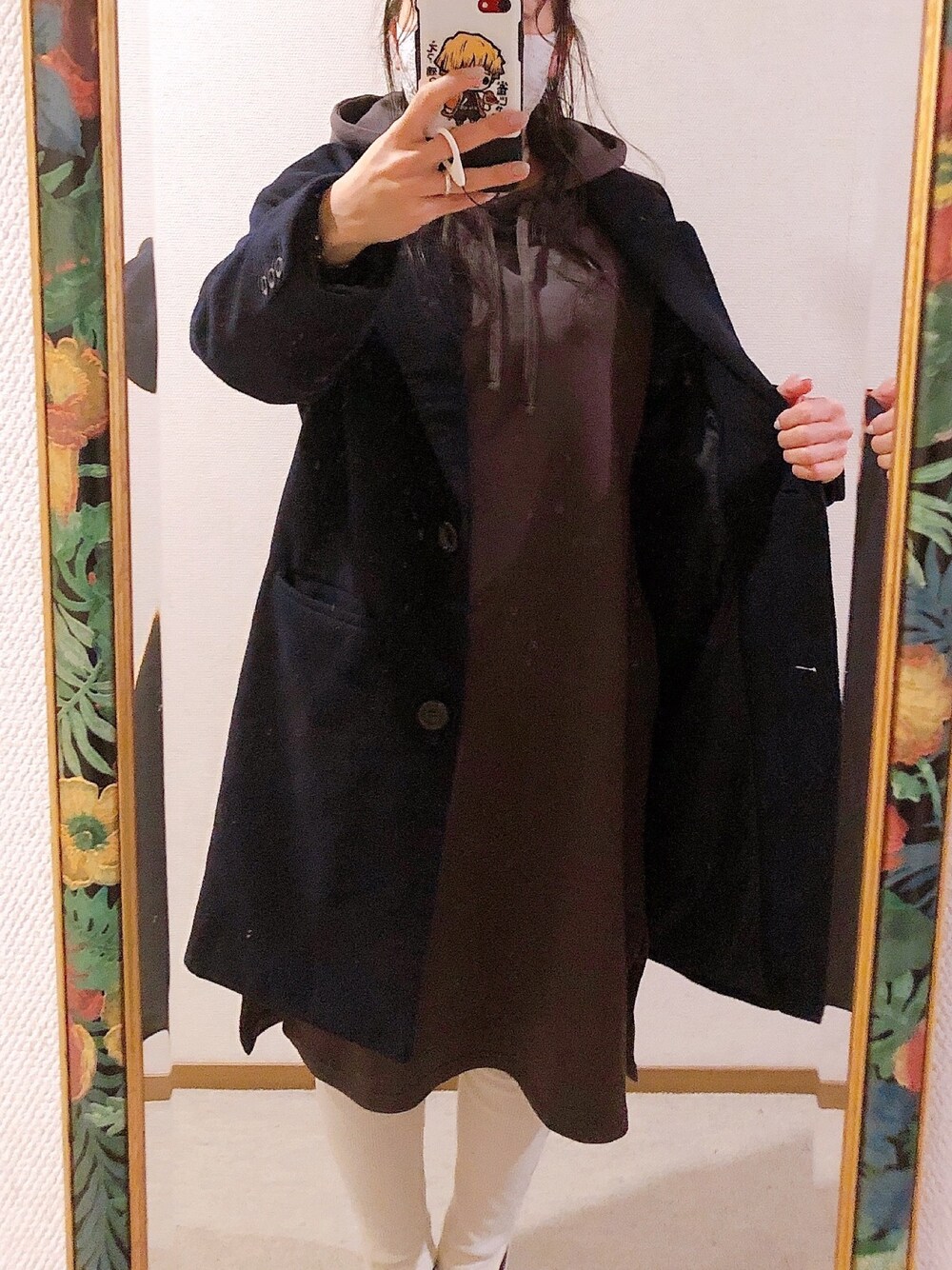 #2021/02/03 #ワッフルレギンス #裏毛パーカーワンピース #チェスターコート