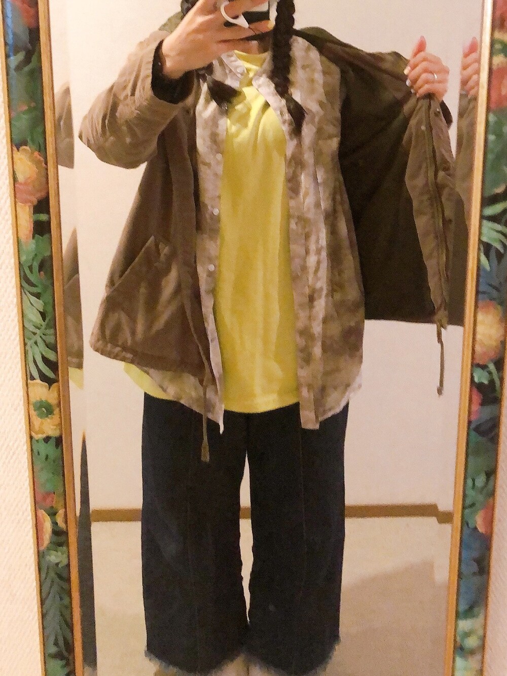 #2021/04/16 #ミリタリージャケット #シアーシャツ #バックプリントTシャツ #フリンジワイドパンツ
