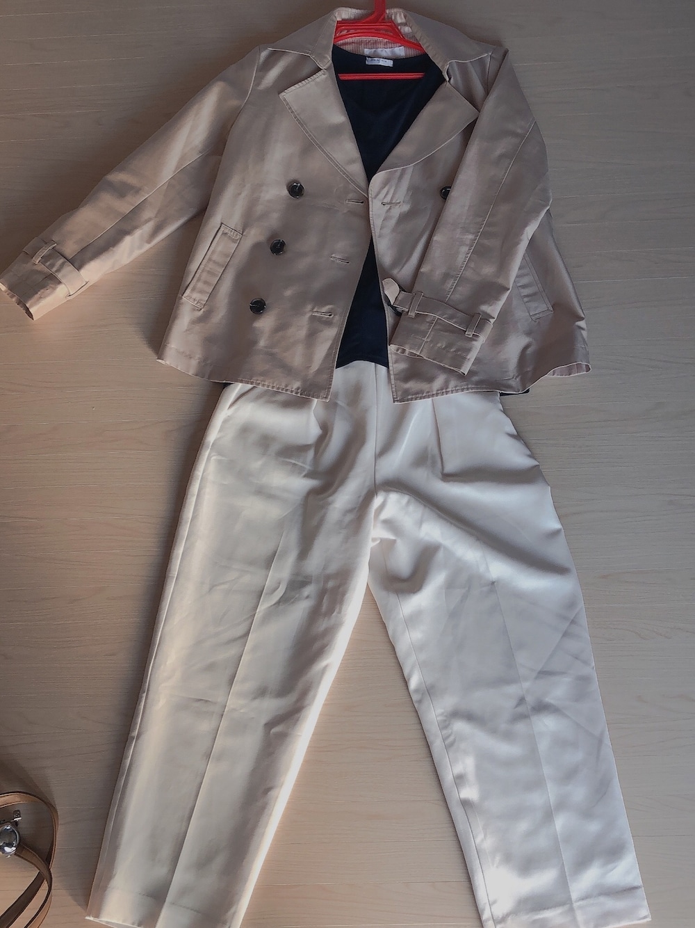 #2021/05/04 #金釦付テーパードパンツ #アクセ付Vネックプルオーバー #ショートトレンチコート