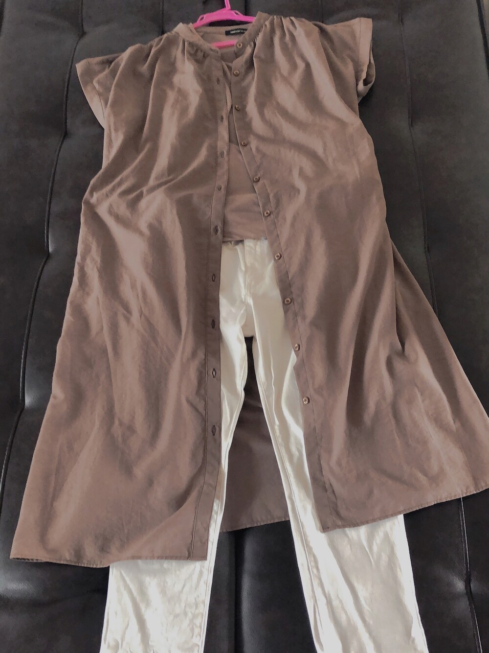 #2021/08/12 #マオカラーシャツワンピース #ノースリTシャツ #カラースキニーパンツ
