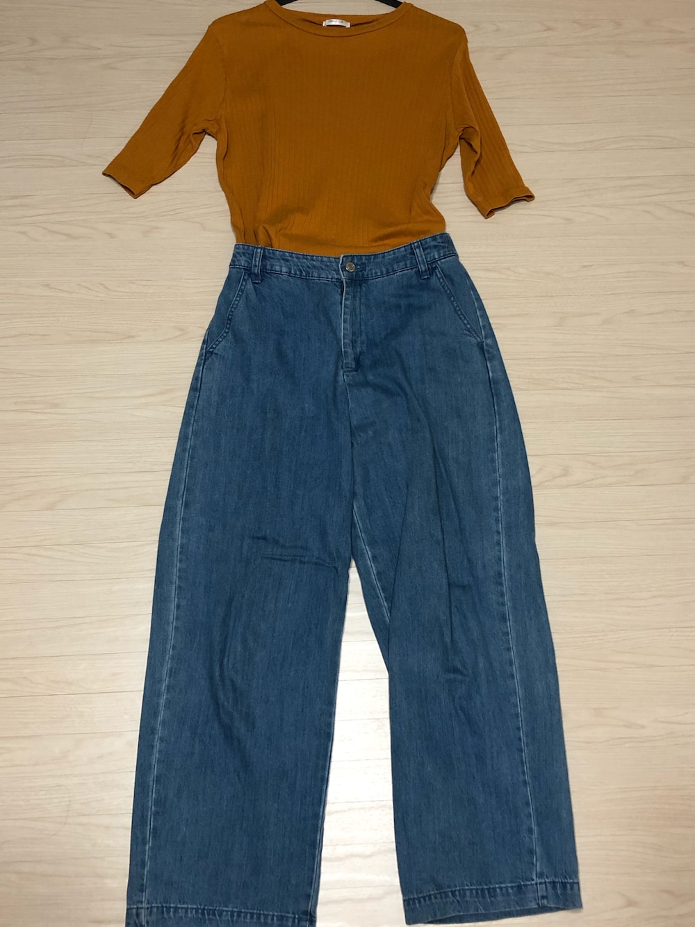 #2021/08/29 #ハイネックリブプルオーバー #デニムストレートパンツ