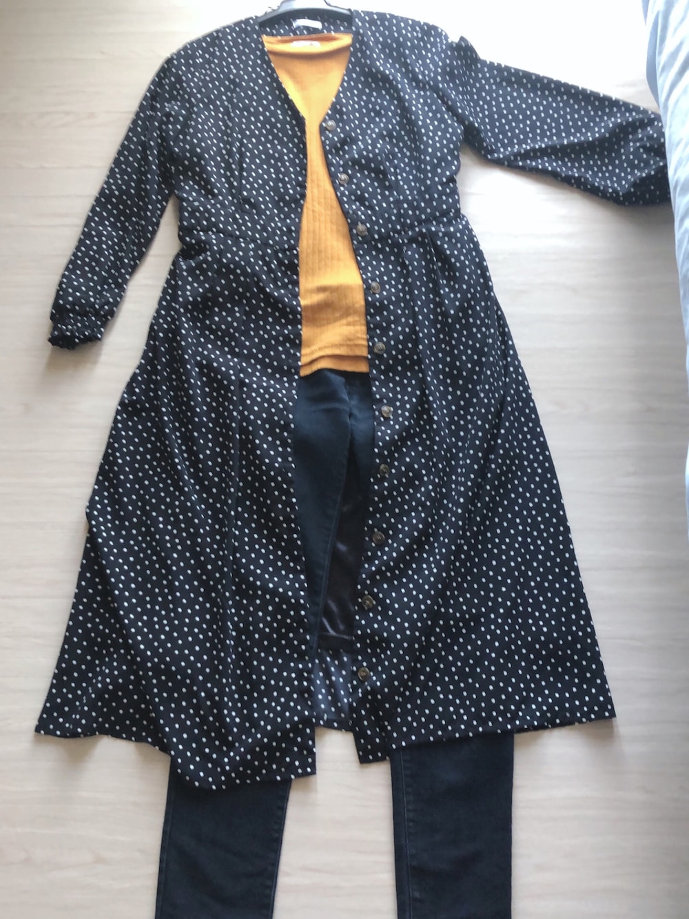 #2021/10/05 #釦使いVネックワンピース #五分袖リブハイネックTシャツ #デニムスキニーパンツ