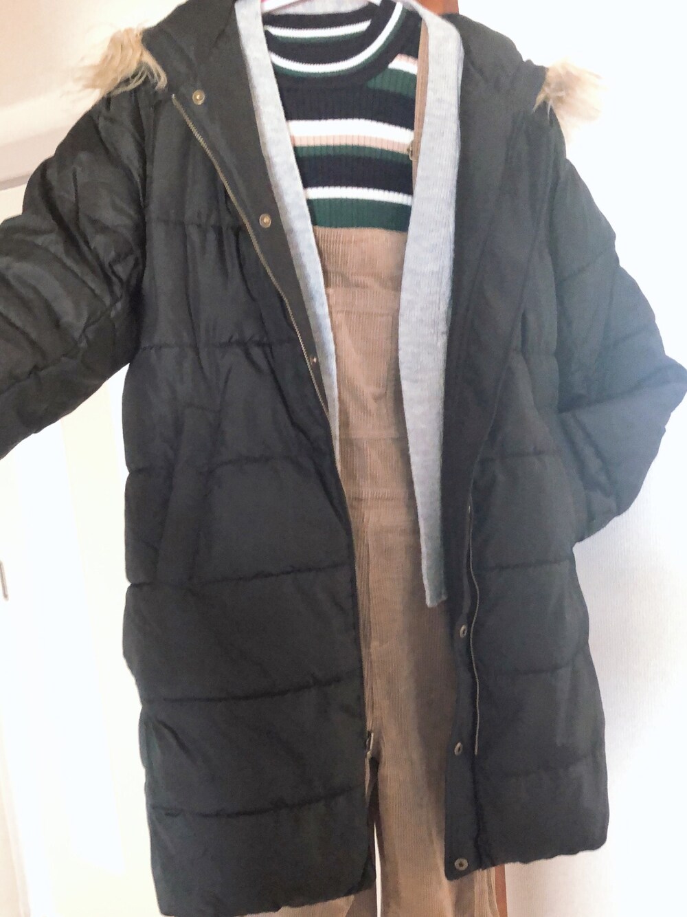 #2021/11/26 #リバーシブルミリタリージャケット #リブハイネックニットプルオーバー #ケーブル編みカーディガン #オーバーオール