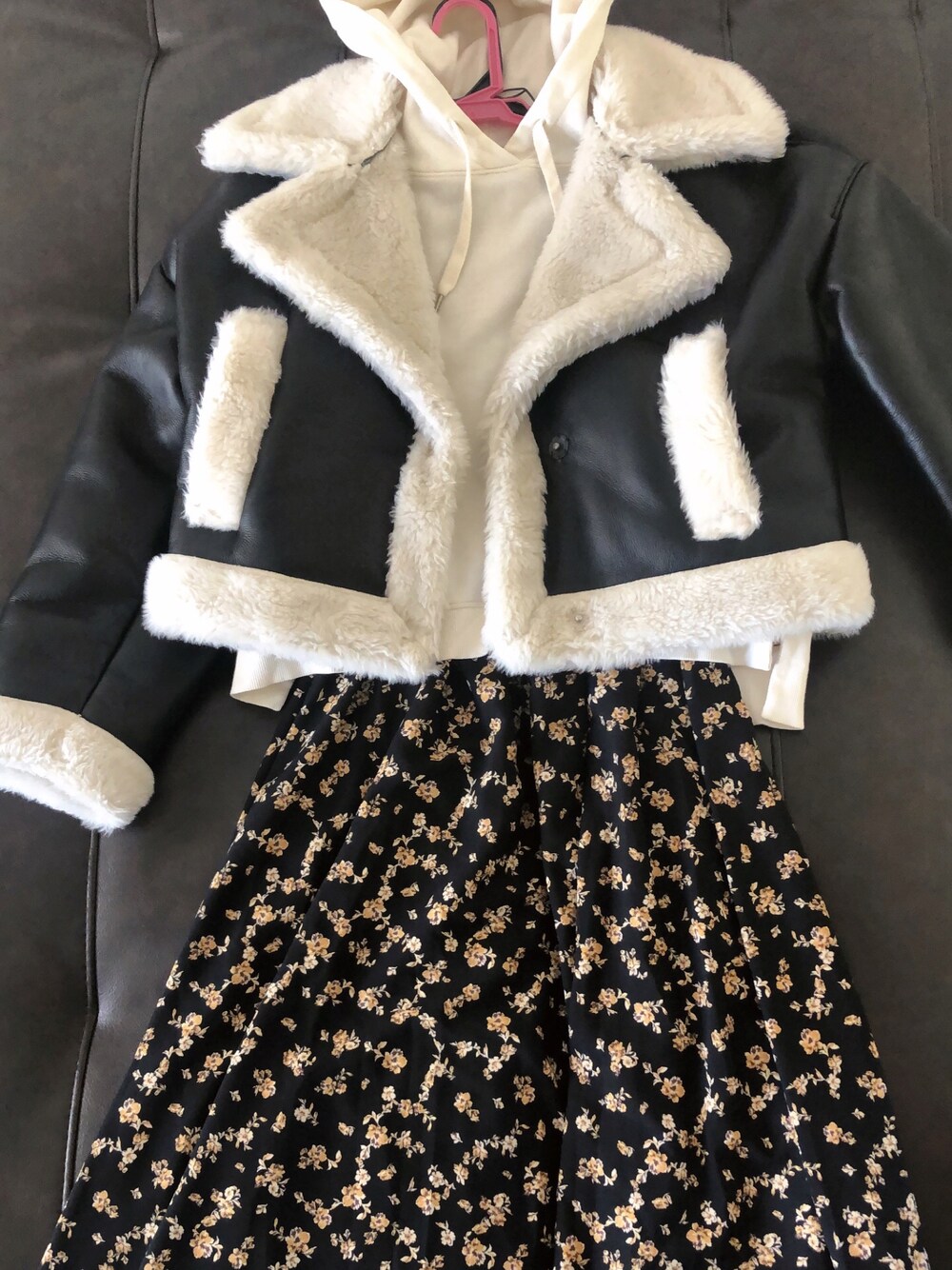 #2021/12/23 #ファー付コート #ショート丈パーカー #ハイネック花柄ワンピース